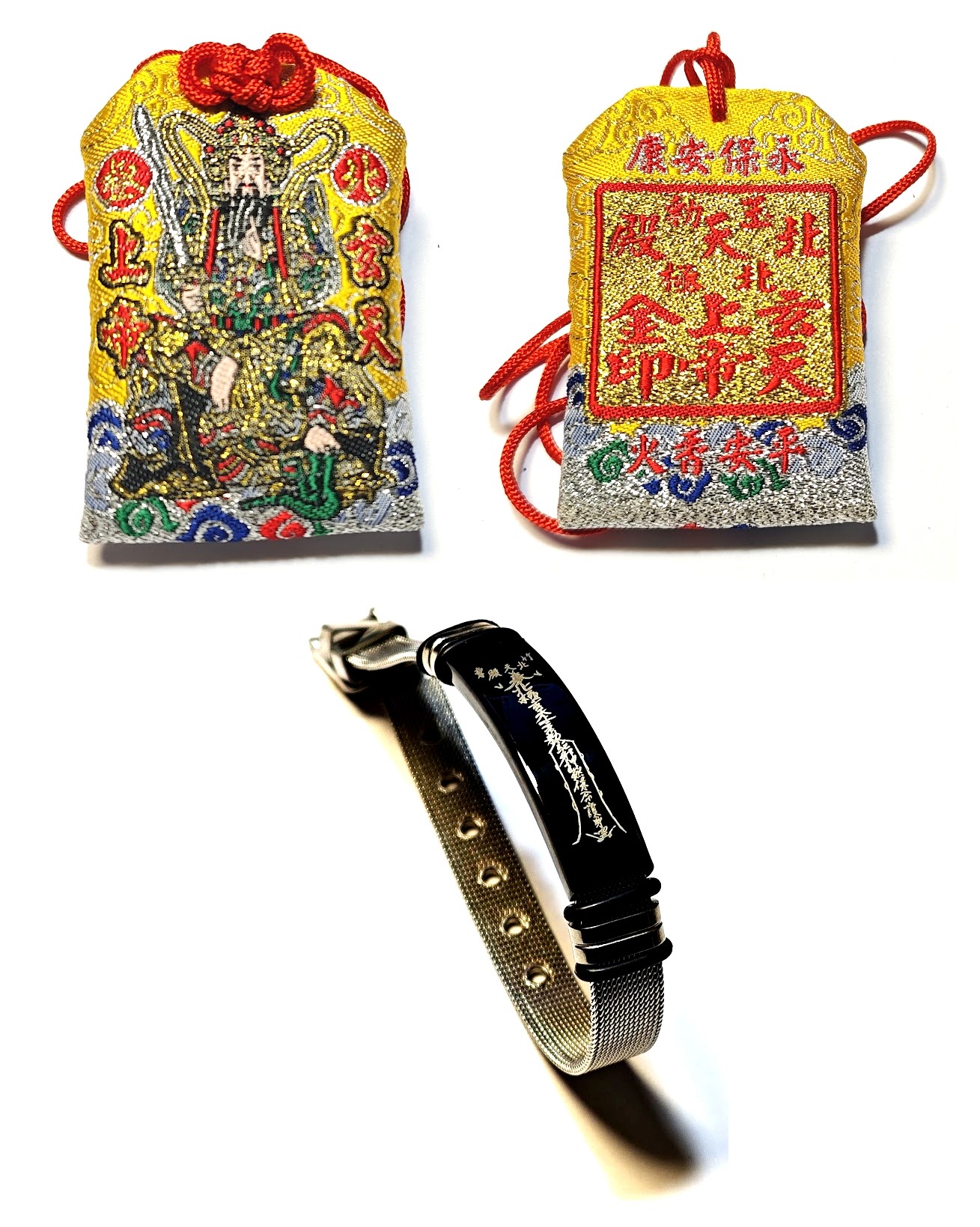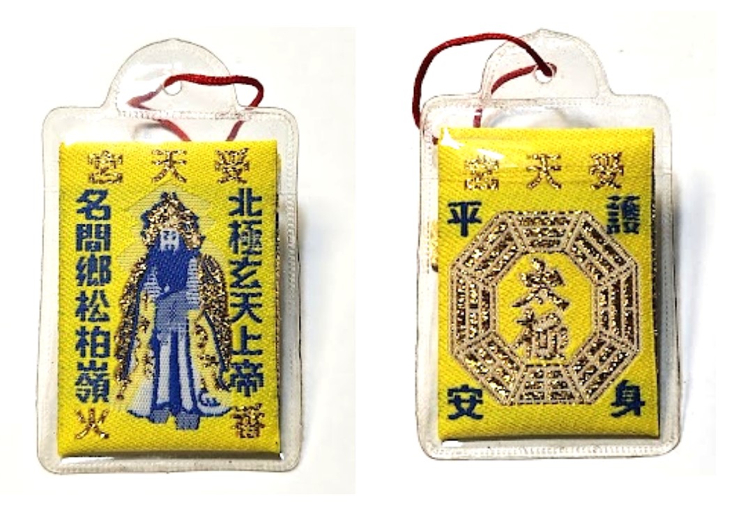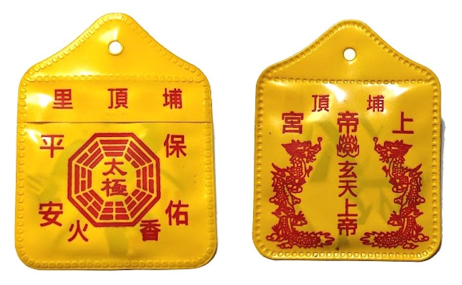 而平安符的符令結構可分為三部分:符頭、符身(符膽)、符腳。符頭書寫三個「P」,代表道教最高神三清道祖。符身多為奉某某宮廟神祇之號令,而有「勅令」之字樣,並書明此道符令之功能如驅邪、護身、鎮宅等,而有隨身平安、安鎮陰陽、保佑民安、鎮宅平安、鎮宅光明、合家平安、合境平安,以及「掃去千災解厄難、招來百福集禎祥」、「元亨利貞」等字樣,除此之外,尚有符令會加繪太極八卦、河圖洛書等圖樣,以加強平安符的靈力。符腳的形式類似畫押,代表道士、法師受籙而能使用符令的印證,如書寫「罡印」的道教複合字;若是以版印方式印製的符令,則多在符腳印「罡」字。最後在平安符令上還要加蓋一方紅色的神明法印,以示經過神力的確認。護身用的平安符尺寸較小,多為紙質,常被折成六邊形放入香火袋內,隨身攜帶,或掛在車上,來保護人身(車)的平安而不被邪靈侵擾。
